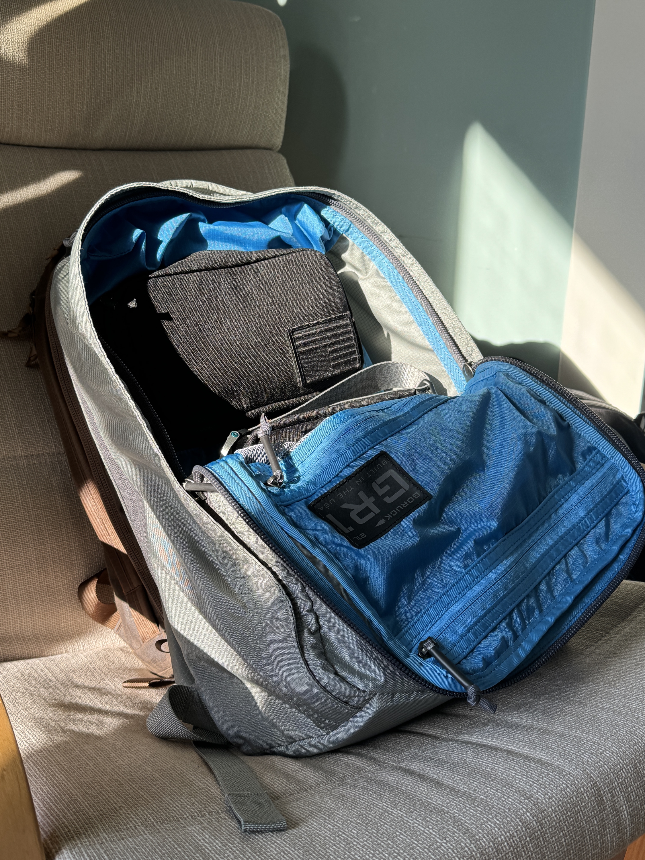 The quick access pocket implementation is great, a nice short zipper so as not to poke your neck, ample space for any sized phone, sunglasses, keys, wallet, etc. Extremely useful and long overdue. (May 2024 update: The regular 1000d GR1 is now available with the QAP, seems GORUCK has pivoted to including it on nearly all “travel” rucks)